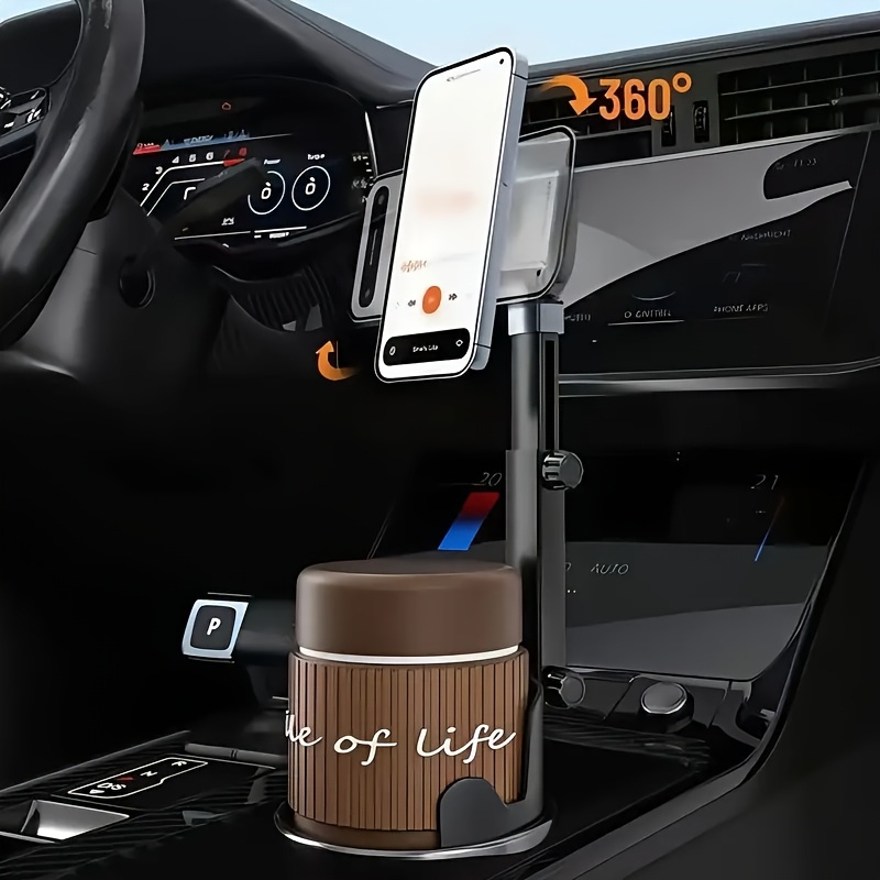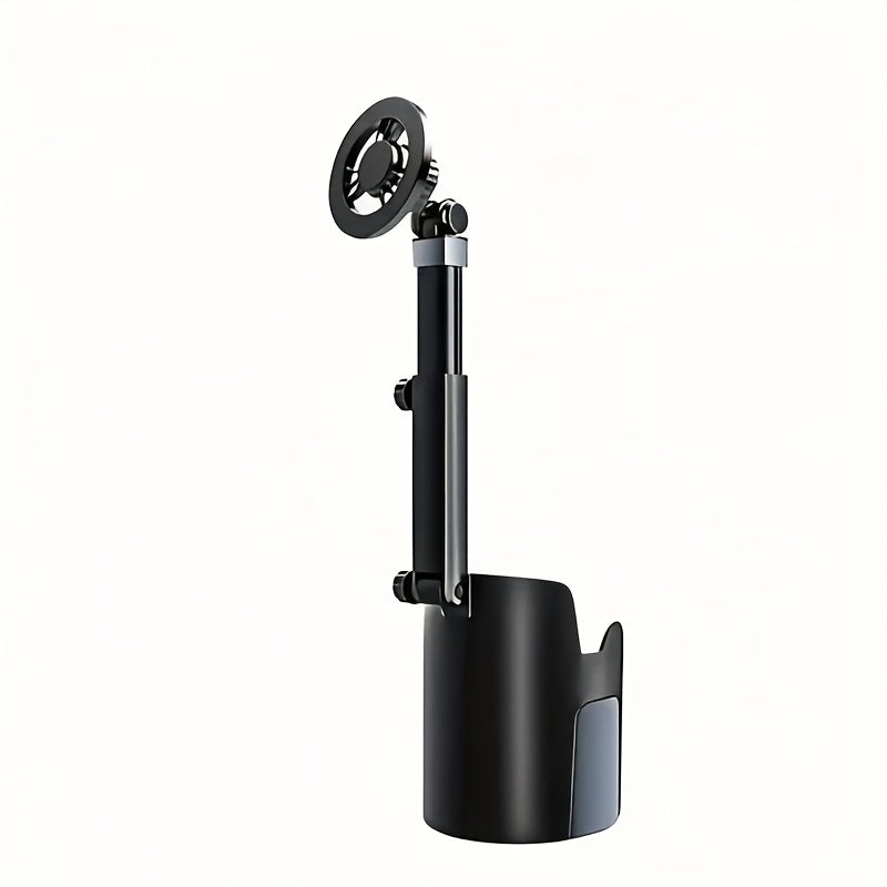 2-In-1 Magnetic Car Cup Holder And Phone Stand - 360-Degree Rotation. Features a Rotating Telescopic Arm, Made of Durable ABS Material, Suitable for Most Vehicles, And Includes 2 Magnetic Stickers for Phones