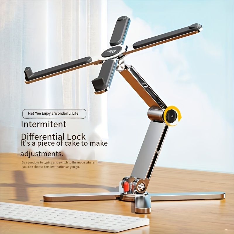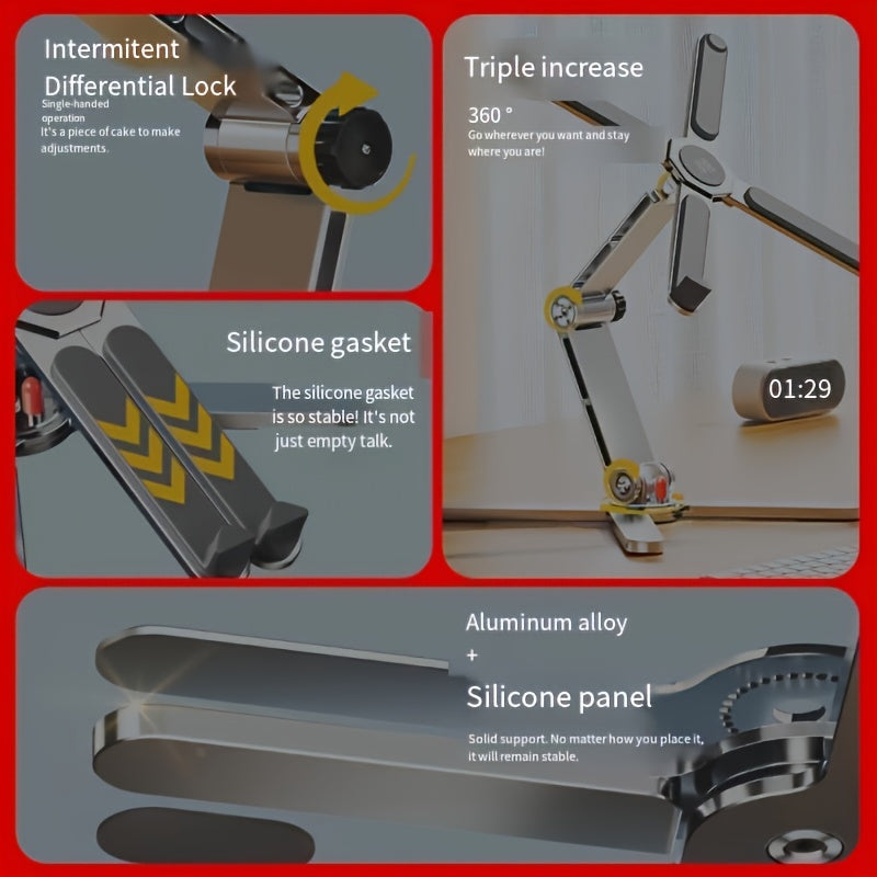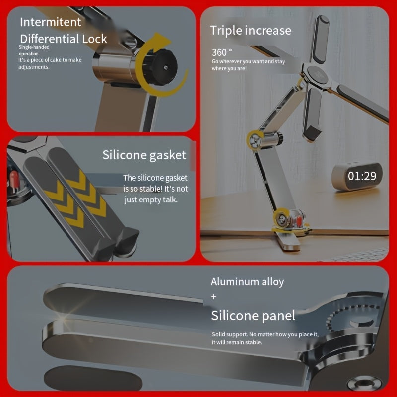 360° Rotating Laptop Stand with Adjustable Height, Foldable Aluminum Alloy Desktop & Gaming Holder for Laptops and Tablets - Portable Swivel Desk Mount