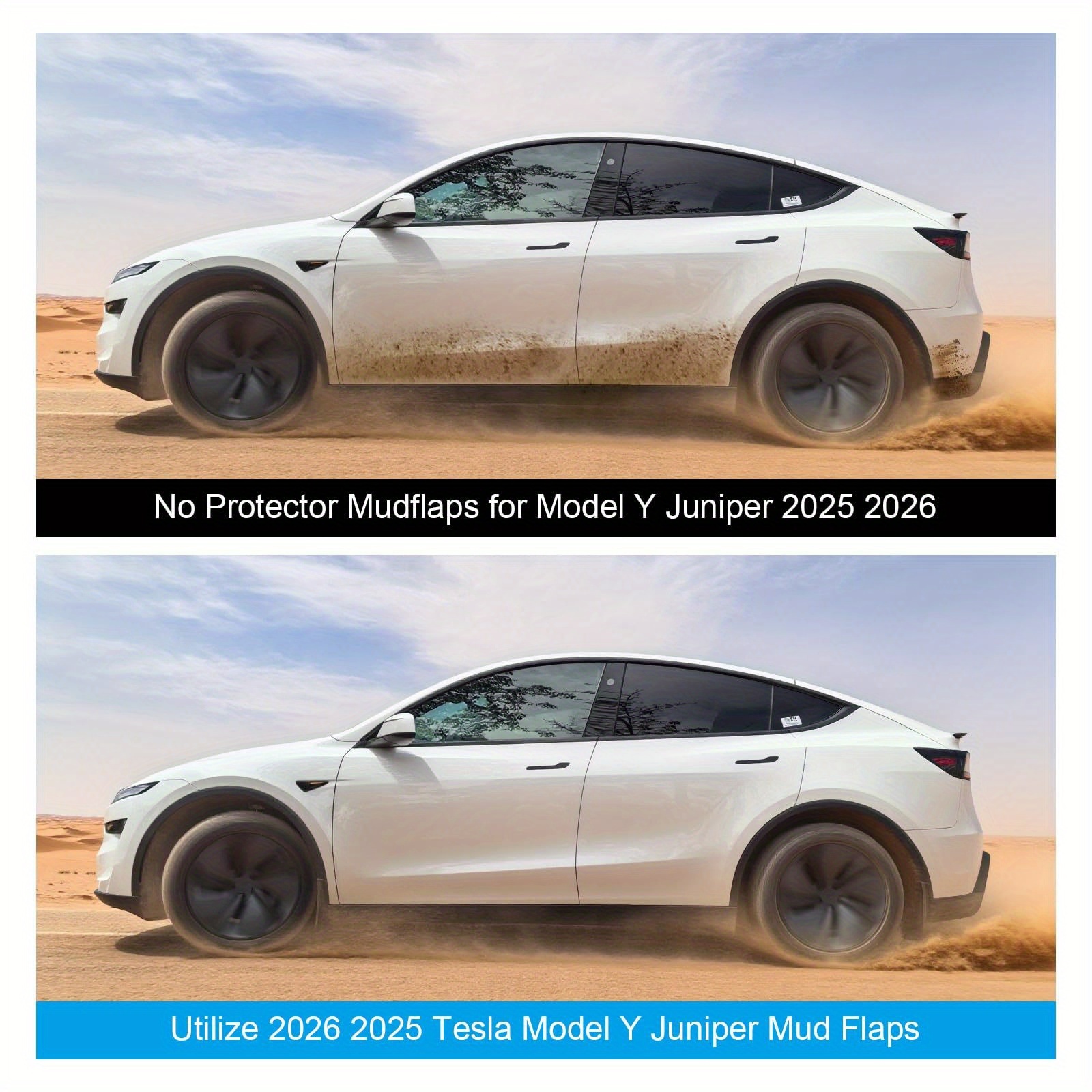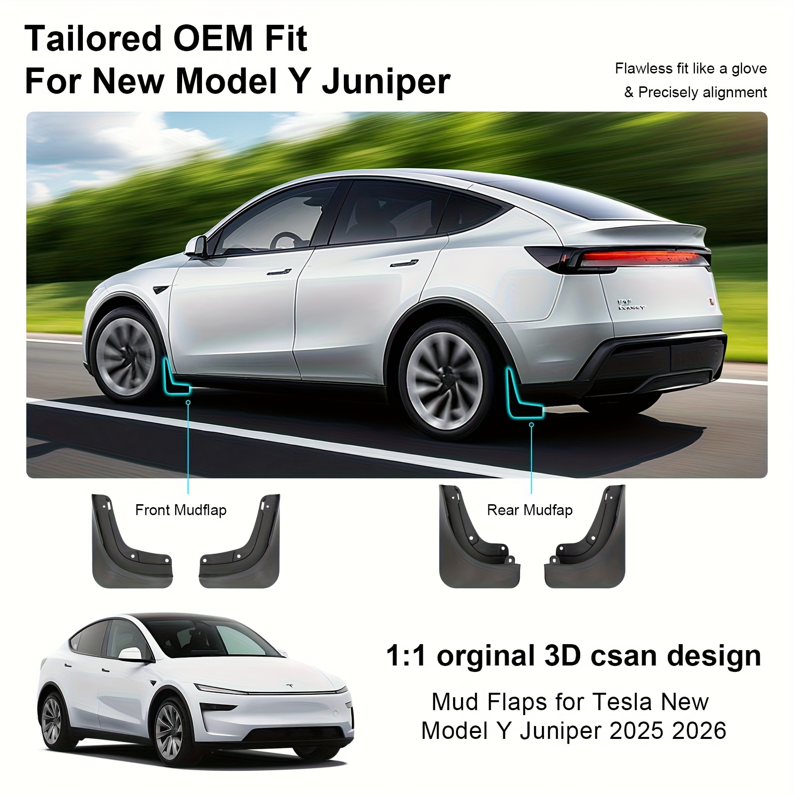 for Tesla for Model Y Juniper 2025-2026 Mud Flaps Set - No-Drill Installation 4pcs Splash Guards, Heavy-Duty All-Season Mud Guard Protectors, Direct-Fit Compatible Paint Protection Fender Upgrade Kit (for Tesla for Model Y Ju